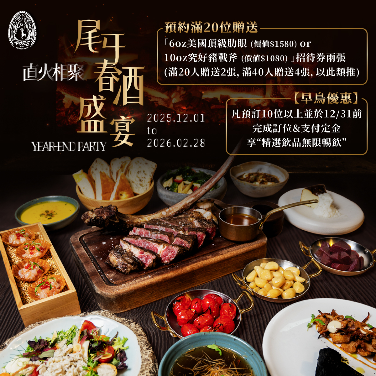 凡預訂10位以上,並於12/31前完成訂位&支付定金享”精選飲品無限暢飲”